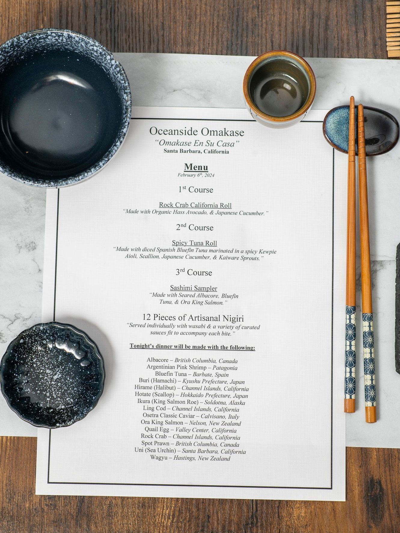 #surfersushichef #oceansideomakase #omakasebox #privatesushichef #sushicatering #privateomakase #datenight](https://scontent-fra3-2.cdninstagram.com/v/t51.82787-15/516329442_18022368932706901_3637738056284126439_n.jpg?stp=dst-jpg_e35_tt6&_nc_cat=111&ccb=7-5&_nc_sid=18de74&efg=eyJlZmdfdGFnIjoiQ0FST1VTRUxfSVRFTS5iZXN0X2ltYWdlX3VybGdlbi5DMyJ9&_nc_ohc=L6ARuRJo-NcQ7kNvwH47uGS&_nc_oc=AdmCU1_IwR64tz45nEIkcTMrW207hQnNhQYCs4ZdsBPgQzcdAknpyZzkg6L8WKDca5o&_nc_zt=23&_nc_ht=scontent-fra3-2.cdninstagram.com&edm=ANo9K5cEAAAA&_nc_gid=c1AjtXAtMkPxv_iycIs6iA&_nc_tpa=Q5bMBQEAb9KHk0uVtY-A7KreJ-Oet4jpYLHt0KBVAvI-NdzK_L69RNizlytTVGkFufcbjGaCV25tC8cSpw&oh=00_Afue0unrnGDzoT65X8QTS0aro50Zo7aW-cnFb8nDyXeyng&oe=699AA745)