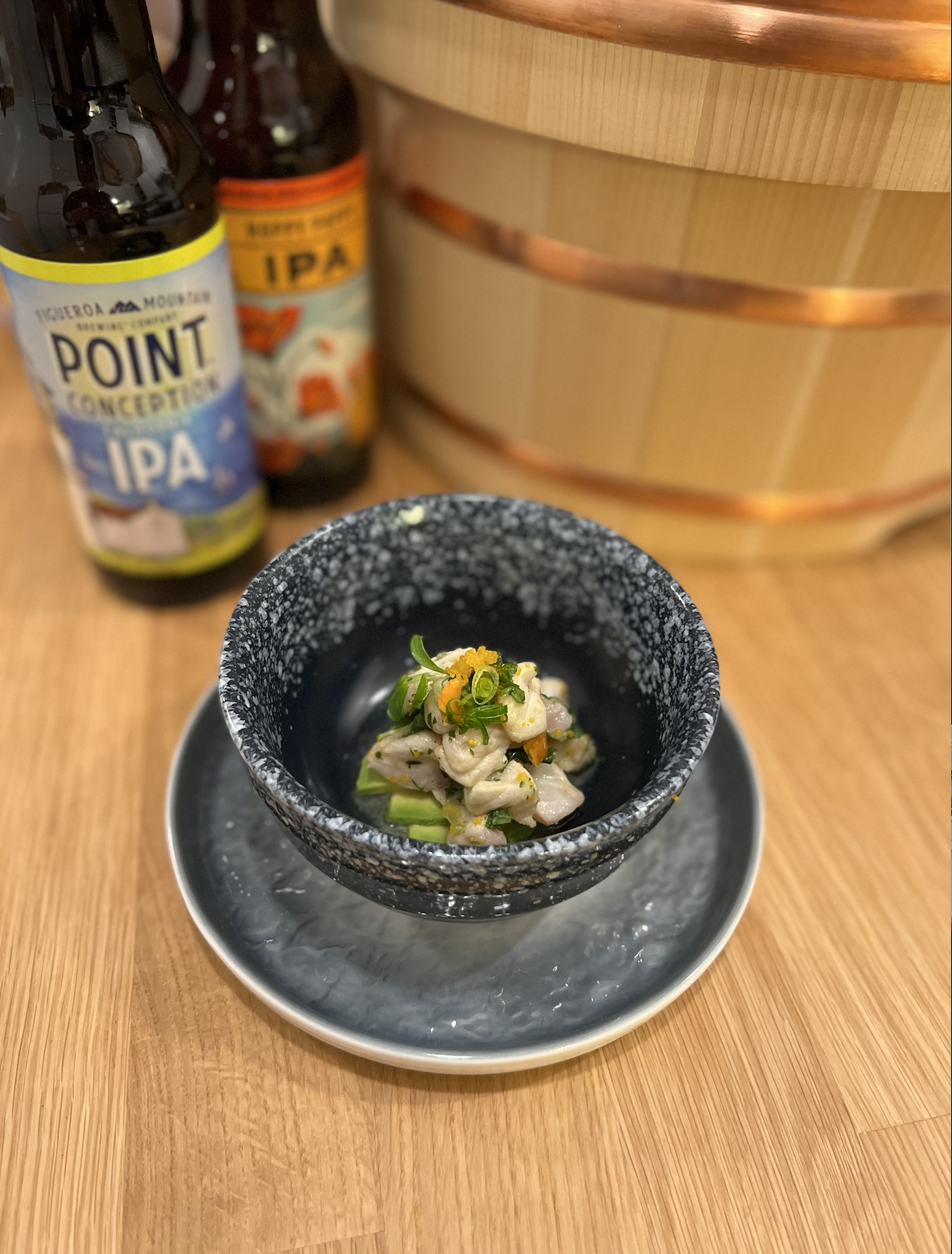 1.) Ceviche avec poisson de roche et Ikura